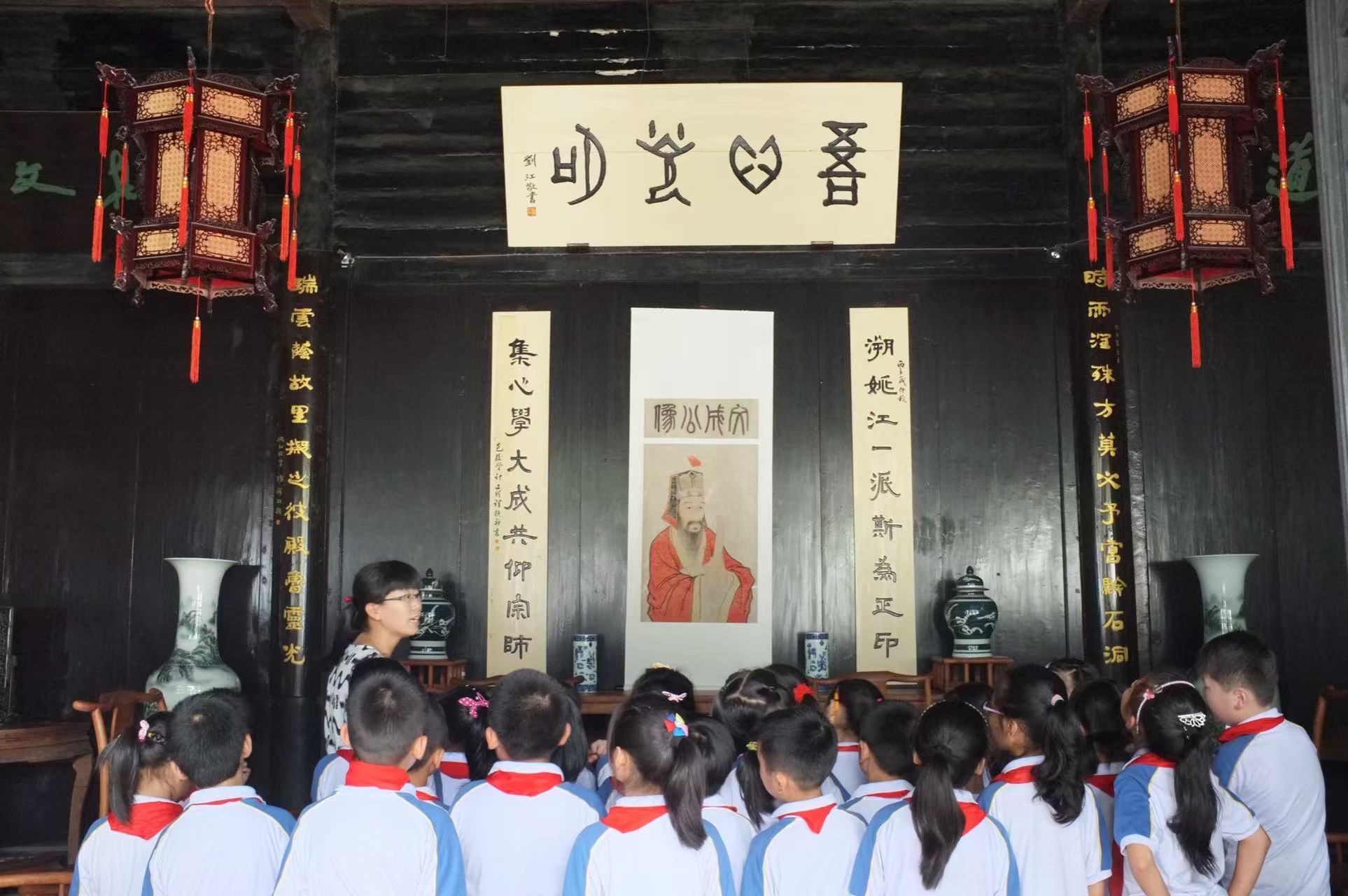 浙江余姚王阳明故居大厅,正中悬挂匾额写着“吾心光明”。芦锦心 供图