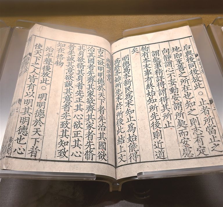 四书章句集注二十八卷宋刻本,上书“修齐治平”等命题。张艺瑶 摄