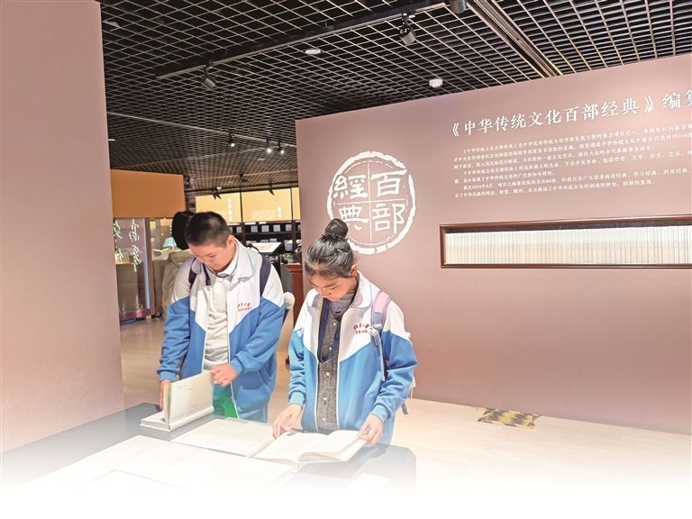 古籍普及成果有力推动古典文献的大众传播。“中华传统文化百部经典”是中宣部委托文旅部指导国家图书馆组织实施的中华优秀传统文化传承发展工程重点项目,以“激活经典,熔古铸今,立足学术,面向大众”为宗旨,采用导读、原典、注释、点评相结合的编纂体例,力求深入浅出,化繁为简,让大众读懂经典、理解经典。展览现场展出了已出版的部分丛书,观众不时驻足阅览。